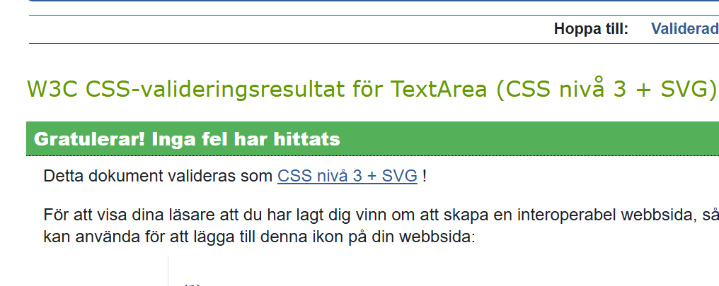 Här finns den validerade HTML och CSS koden: