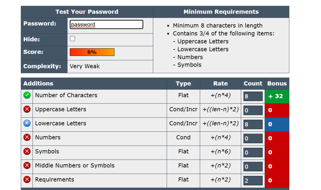 Det finns också verktyg som hjälper en att skapa säkra lösenord, ett bra exempel är Password Meter. Det är en hemsida som du kan testa ditt lösenord och få ett betyg på hur säkert ditt lösenord är.
