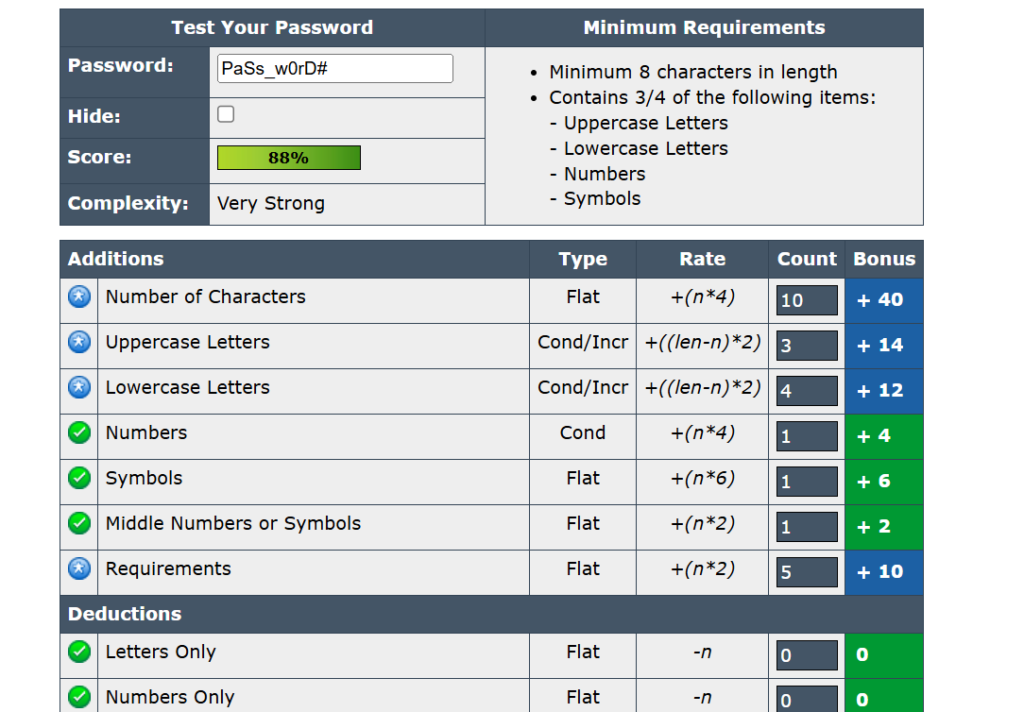 Men nu är lösenordet starkare jag bytte bara utt ett O mot en nolla, ett understreck i mitten, specialtecken i slutet, och gjorde vissa bokstäver större, då två bokstäver eller fler i samma storlek gör det lättare att knäcka, så löste jag det genom att göra vissa större. Dock hade jag aldrig uttgått från ett vanligt lösenord, då säkert många andra har gjort liknande, kan ha varit med i en dataläcka och så. Password Meter mäter bara hur svårt det är att knäcka matematiskt, men räknar inte in andra faktorer.